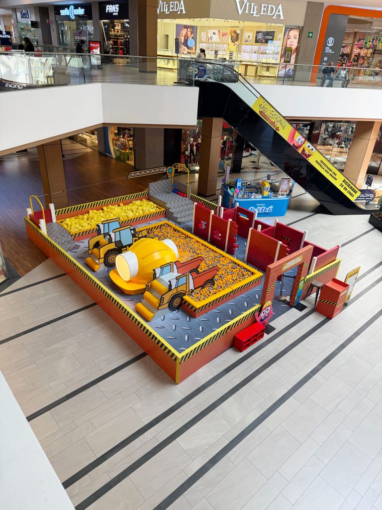 No es el típico parque de juegos. Este espacio ha sido diseñado bajo una temática industrial inmersiva, donde los niños no solo van a saltar, sino a realizar un roleplay (juego de roles), convirtiéndose en constructores y arquitectos de su propia diversión.